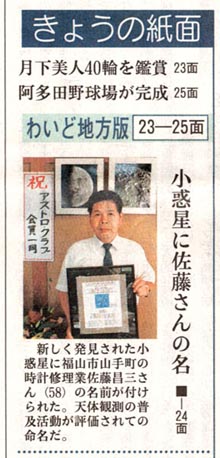 翌朝の中国新聞 第1面トップにカラーで掲載されました