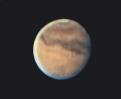 2003年11月 4日18h18m〜19m30s. 25cm反射+ CLAVE 12mm. +ToUcam. Registax V2.0 . 1283Frames Stack. 露出1/33S 今夜も火星を撮像しましたが随分小さくなりました。 |